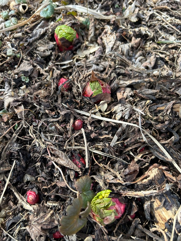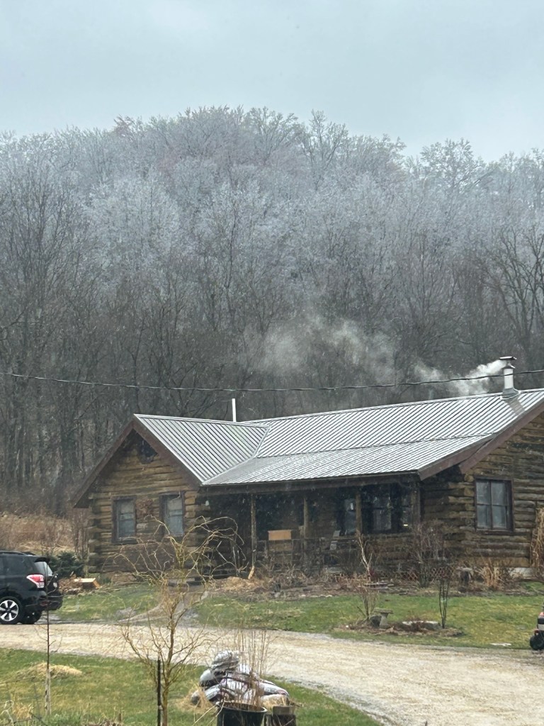 Because Spring is my favorite time of year, I really do like it to take its time, but it can be really harsh on plants. Today was blowing, raining, and from what I could see looking up to the ridge, there was thick ice on the trees