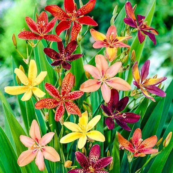 Not a lily at all, but somewhat similar leaves. Very much like Blackberry Lily. The brightly colored petals are pretty and numerous. Readily self seeds too. Grows about 18″ and does well in drought.